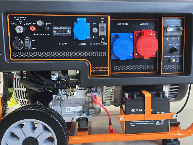 Данный генератор Lifan обладает высокой мощностью в 9.0/8.5 кВт, длительным временем непрерывной работы, имеет выходное напряжение 220В и 380В. Установка комплектуется ручками и колесами диаметром 8" для удобства транспортировки и перемещения, электрическим стартером, аккумулятором 12В/18Ач, вольтметром, индикатором уровня топлива, системой контроля уровня масла, а также системой защиты от перегрузок (AVR). Медная обмотка альтернатора позволяет повысить КПД, уменьшить расход топлива, нагрев и износ агрегата, тем самым увеличивая срок его службы.