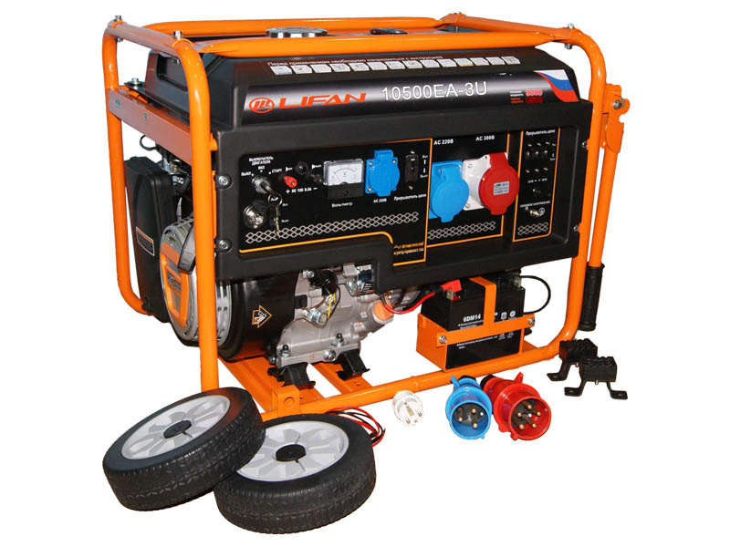 Генератор LIFAN 10500EA-3U - это совершенно новое поколение компактных и мощных одно-/трехфазных бензиновых генераторов, применяемых в качестве источника электроэнергии на дорожных и строительных работах, промышленных объектах, на личных загородных участках, в автомастерских, магазинах и в других подобных областях. Исключительная надежность, устойчивость к поломкам и высочайшая производительность делают данную модель одной из лучших на рынке в своем классе электрогенераторов.