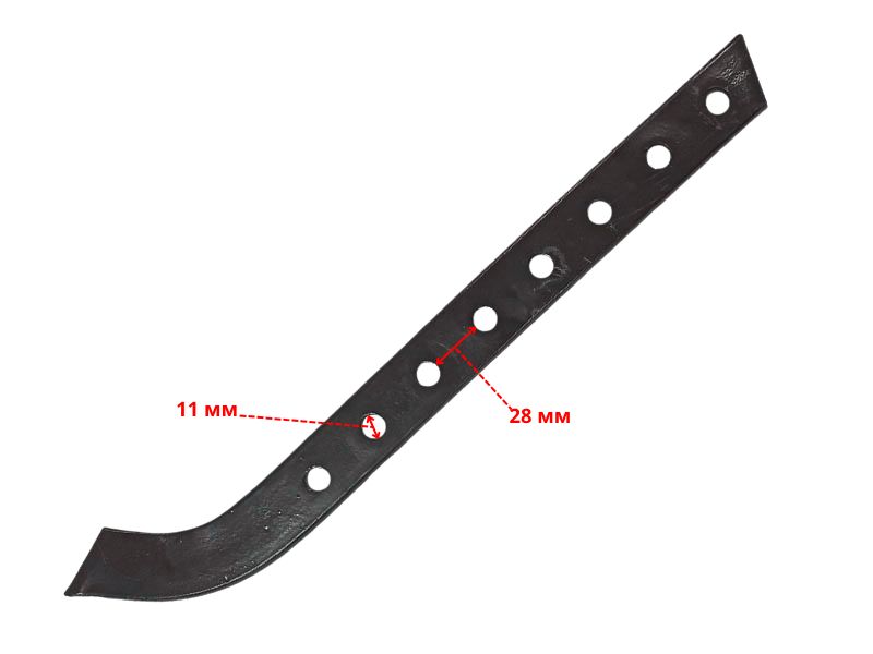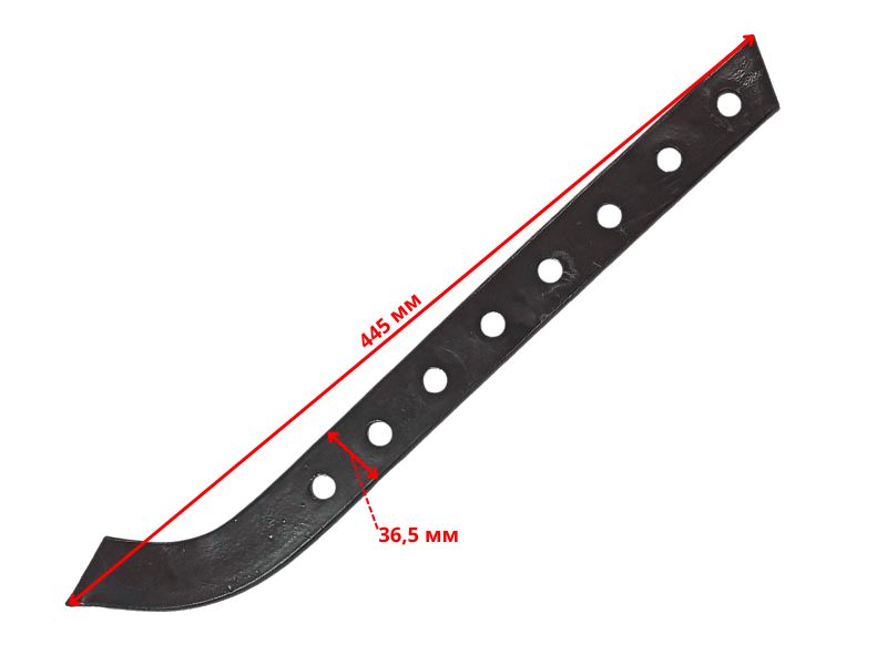 Сошник мотоблока / мотокультиватора. Используется при фрезеровании почвы в качестве тормоза (якоря). Имеет 8 отверстий для регулировки заглубления фрез, общая длина 445 мм